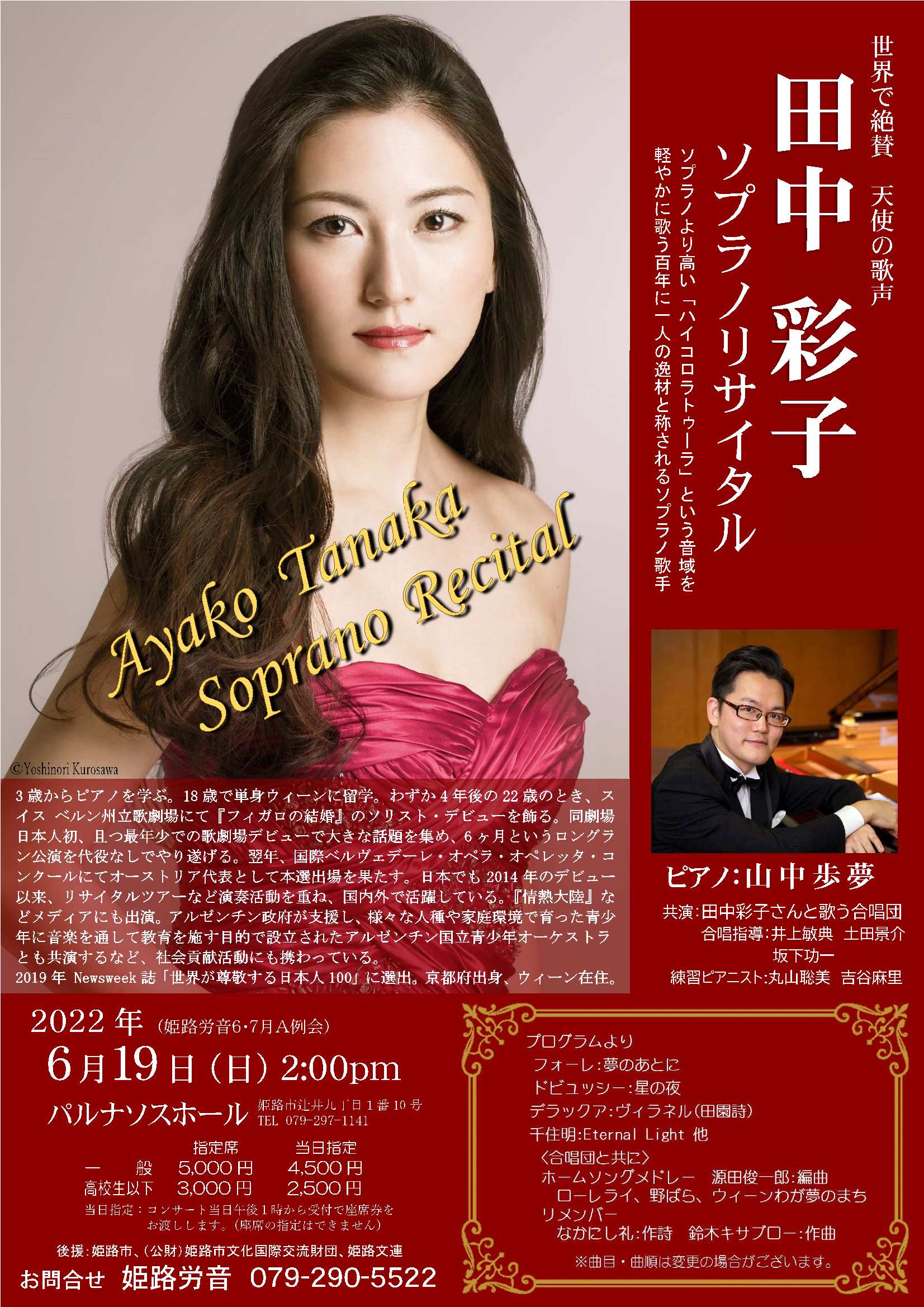 6・7月A例会 田中彩子 ソプラノリサイタル 6/19(日)14:00開演 パルナソスホール 1回会員 5000円 高校以下3000円 |