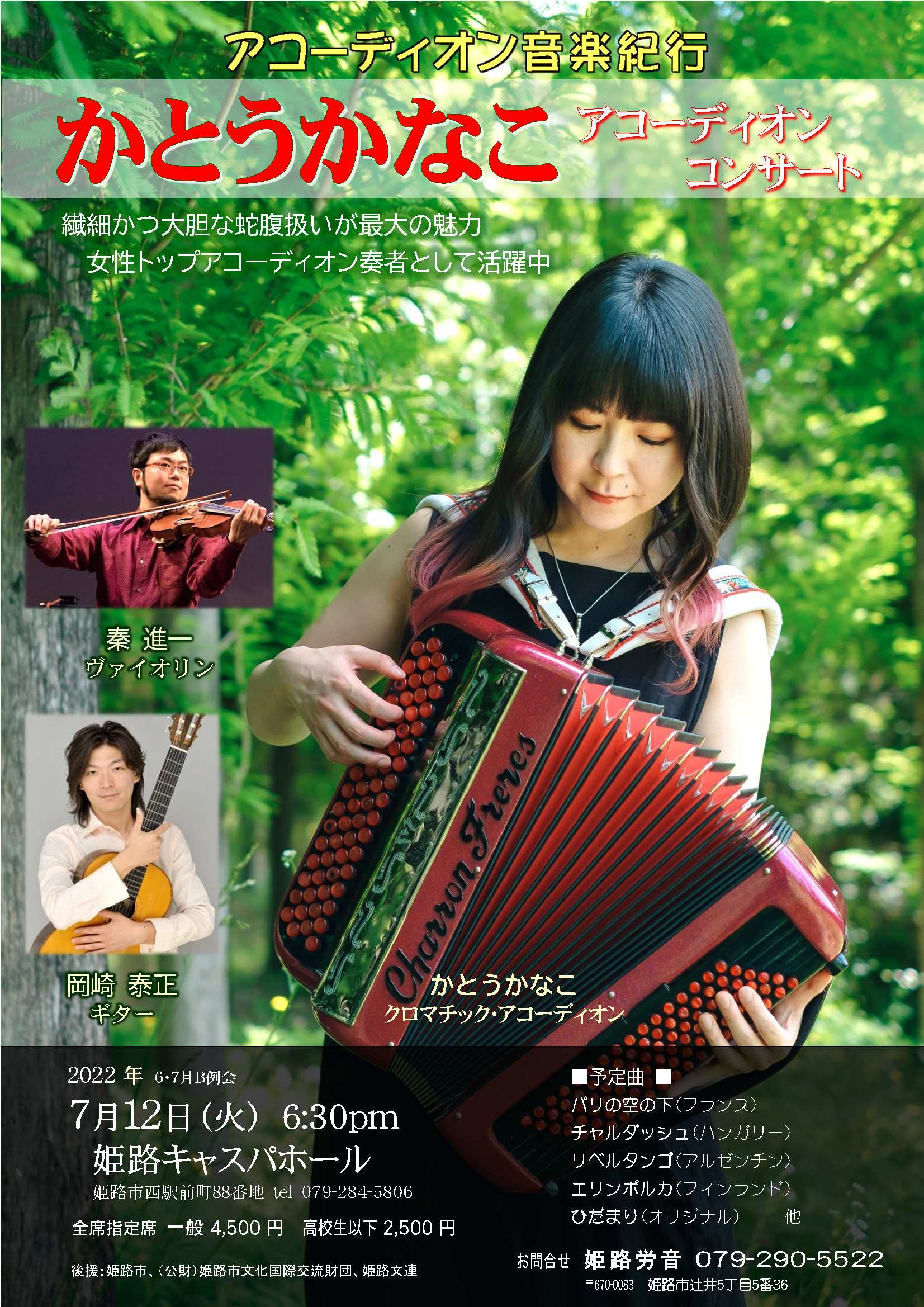 6・7月B例会 かとうかなこ アコーディオン音楽紀行 7/12(火)18:30開演 姫路キャスパホール 1回会員 4500円 高校以下2500円 |