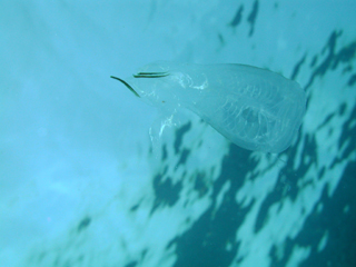 ホワイトチップ、ナポレオン(2匹)、キンギョハナダイ、ハナゴンベ、カスミチョウチョウウオ、イソマグロ、オオサルパ、ヘラヤガラ、モンガラカワハギ