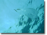 エントリーすると、浅場から、ドロップオフの砂場へ。小型のナポレオンが現れました。グアムのように人懐っこいわけではなく、追いかけても逃げてしまいました。