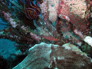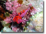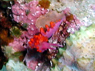 根の頂上にはルージュミノウミウシが2匹。なかなか綺麗でしたが、何せ個体が小さくてピントが合わない。見つけたのは私でしたが、ガイドさんが人を呼んだので、已む無く退散。