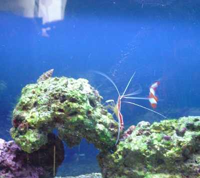 脱皮してからエビ君めっちゃハツラツとしています。 本来のお仕事である魚の体の寄生虫の掃除をしてくれます。今までは自分のテリトリー内に魚が入ってくるときだけヒゲをこすりつけていたのですが、今では積極的に移動してくれます。 なんだか女王様のムチのようです。ビシィィィィッ