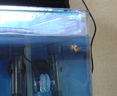 小さいカクレクマノミがこの場所にいることが多くなった。水面にパクパクしてるわけではないので酸欠ではなさそう。エビといい、こいつらなりに落ち着く場所があるのだろうか。