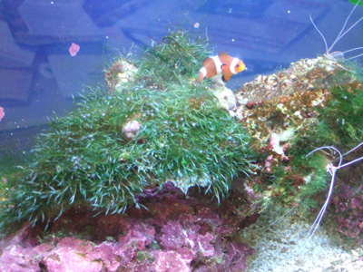 それよりライブロックがえらいことになってまして、海草ボーボーです。イソギンチャクの代わりにはならないけど気持ちよさそうよ。