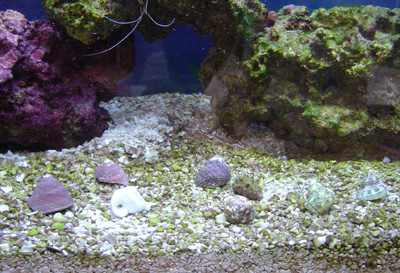 友達のうささんちの息子さんが浜辺で拾った貝を頂きました。真ん中に(右から3番目の上)ヤドカリ君を置いてみましたが、さてどうでしょう。どれか気に入ってくれるでしょうか。 あまり目立つところに置いておくと恥ずかしがって宿替え出来ないかと思って、このあと水槽の横に置き換えました。