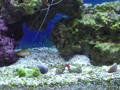 十日たってもまったく宿替えしようとしないのでやっぱり目立つ場所に貝を置いてみました。するとさっそく物件選び!(笑)